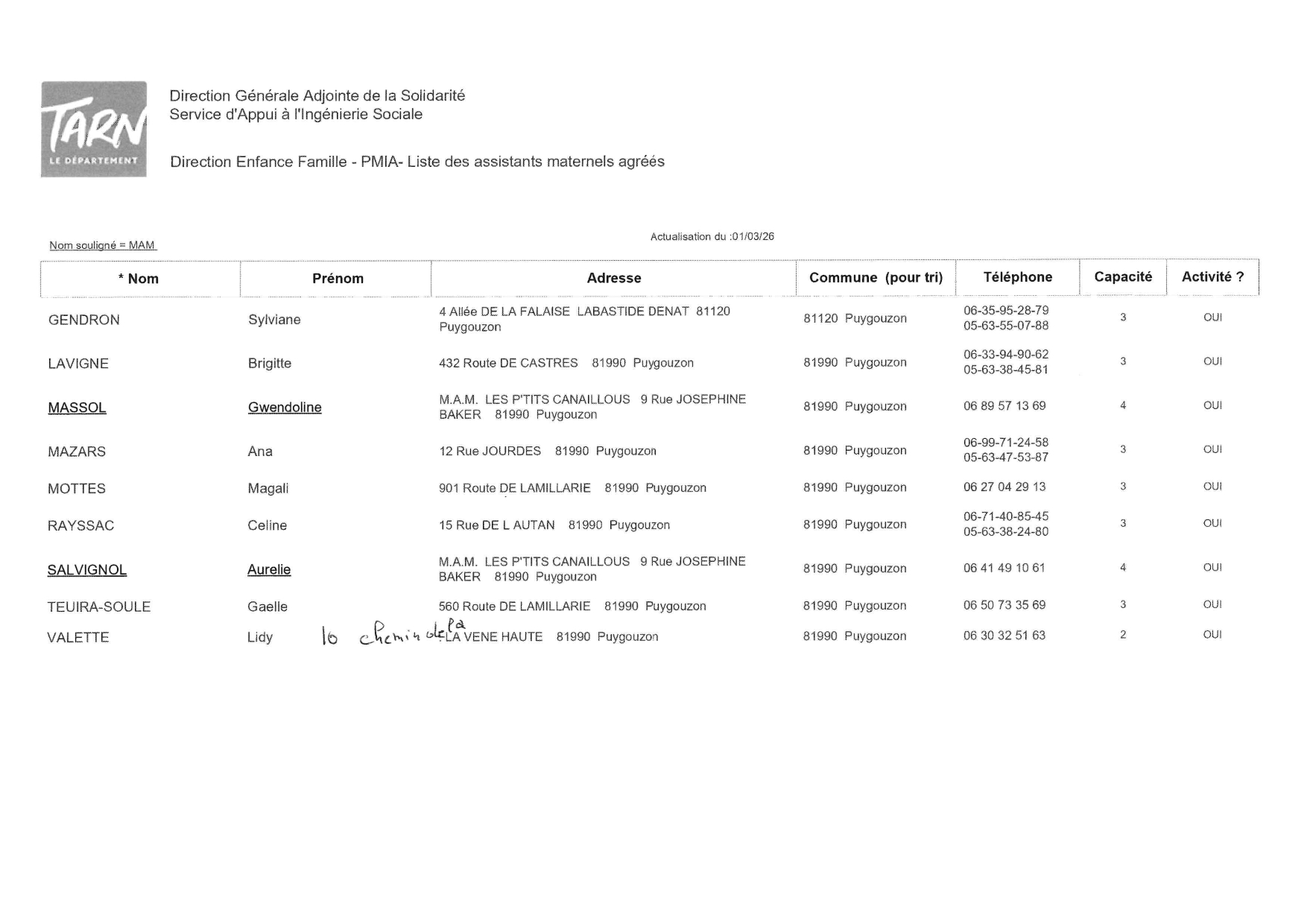Liste des assistantes maternelles